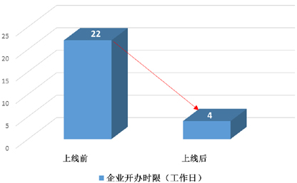 平台上线前后,企业开办办理时限从22个工作日压缩到4个工作日