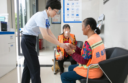 公益延伸到行外。衢州职业技术学院大学生志愿者和支行志愿者拎着矿泉水和雨伞走进附近的社区,把爱心送到户外劳动者手中。付成楠是大学生志愿者之一,他和另外几名同学一起来到了玉龙湾小区,里面正巧有几位创建全国文明城市志愿者阿姨在捡垃圾,他们马上把这些水和雨伞递到了阿姨的手上。几位阿姨起初还有些不好意思接受,在志愿者的解释下,她们收下这份爱心。“大家都是志愿者,建行还来送水送雨伞,让我们既高兴也有些不好意思。我们希望越来越多的单位像建行一样加入到志愿者队伍中,关注劳动者,关注身边需要帮助的人,共同服务社会。”志愿者王月娥说。