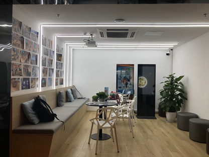 随着和他们聊天的逐渐深入,我了解到卫东和阿K是在建融家园的一次活动上认识的。“建融家园给我最大的感受就是这里的人非常的温暖。”卫东补充道,“有中超比赛的时候,整栋楼的球迷都聚集在影音厅看苏宁的比赛,那种氛围就像是在球迷酒吧,感觉特别好。”卫东眼睛闪着光,激动地说:“中秋节那天晚上,我10点多才到家,发现大家还给我了留了一份月饼,当时心里感觉特别温暖。在建融家园认识了这一群好兄弟,我们一起创业、相互支持,动力更足了。”