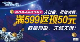 ★新办变形金刚双标卡支付宝微信满599元返现50元
