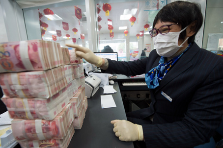 广东省东莞建业支行启动防疫应急预案,协助客户完成捐赠汇款。■李建/摄