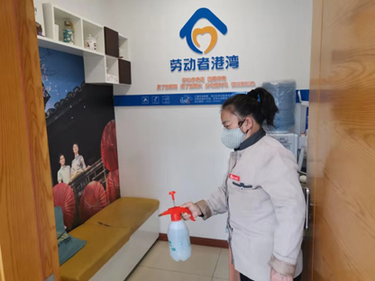 四川省泸州分行对所辖网点中的“劳动者港湾”全部进行消毒。■陈洁/摄