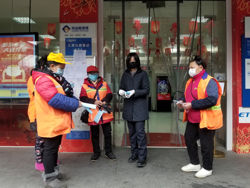 贵州省黔东南北京路支行党员带头奋战抗疫一线,加大网点及智慧柜员机消毒频次,配备体温检测仪、防病毒药品、免洗洗手液等,积极为快递小哥、环卫工人、出租车司机、交警等户外工作者提供防疫服务。■周文涛/摄