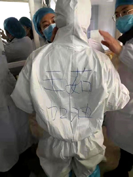 姐姐到武汉第二天,传来照片报平安,她穿着厚厚的防护服,身后写着四个字“王茹加油”。看着照片上那个全副武装、即将进入感染病区的背影,感觉姐姐就是一个战士。那是一群国家有难为国请命的战士的缩影。我想说:“姐,你是我们的骄傲,全家人等待你凯旋!”