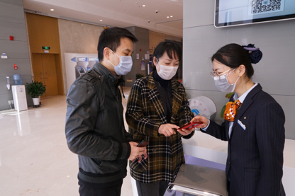 宁波市分行员工现场指导客户使用建行“智慧社区管理平台”系统,为机关企业单位复工提供保障。■ 石志藏/摄