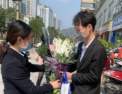 一场欣赏花艺带来的视觉享受,将居家隔离抗“疫”的枯燥抛之脑后。线下客户定制的专属花束,第一时间由客户经理送到客户手中。