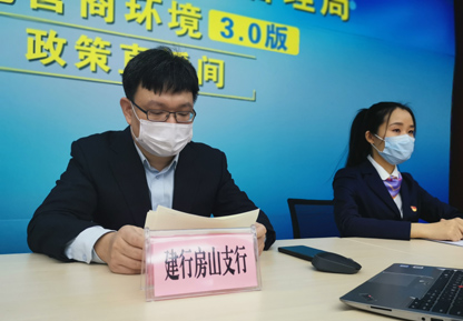 赋能中小企业客户。房山支行积极对接房山区政务局,普惠金融业务专家走进房山区优化营商环境政策直播间平台,开展建行普惠金融政策宣讲,与房山区的中小企业主分享建行在疫情防控期间解决企业融资问题的一系列优惠政策和专属产品,并逐一解答企业主提出的问题。