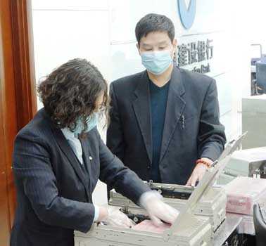 “家有一老,如有一宝”,在蓟州支行营业部这个大家庭里,就有这么“一块宝”。他的党龄比有些年轻员工的年龄还要大。1987年入党,1989年从部队转业来到建行,如今已经57岁的老大哥马建清。在这场防控疫情的战斗中,老党员始终有着“老将”的自信与担当。他作为加钞团队的带头人,始终冲锋在第一线,疫情期间坚持每天上班,为营业大厅、办公区域、自助银行消毒,每一个环节都认真细致,一丝不苟。他带领加钞团队顶风冒雪,走进医院、部队、工厂、社区对10多台离行式自助设备进行定期消毒、巡检、清机加钞,保障了设备平稳运转。