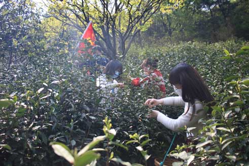 人间最美四月天,远银先锋采茶忙。缓解茶农用工荒,战疫红旗迎风扬。