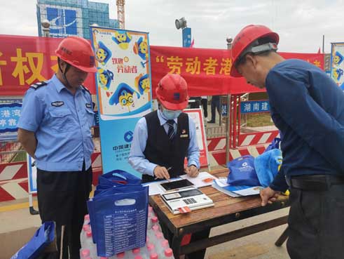 为致敬一线劳动者,五一期间,湖南长沙天心支行将“劳动者港湾”搬进建筑工地,向参加项目建设的工友们开展志愿服务活动,送上防疫和防暑物资,同时宣讲防电信诈骗等金融知识,以实际行动支持复工复产。