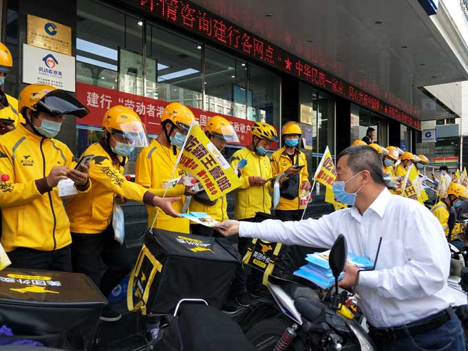 甘肃省陇南分行集中为外卖小哥等户外工作者宣讲普及金融知识。 ■ 赵宏洲/摄