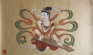 临摹敦煌壁画中的乐伎