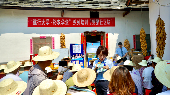 “让村里人学习、让扶贫干部代言、让农特产品出山”,“裕农学堂”首期现场直播课近日在安康市财梁社区开播。课程分为现场授课和直播带货两个环节。现场授课中,建行网点员工为广大村民讲授防假币、防诈骗等金融知识;并邀请当地高校师资为村民们上了一堂形象生动的新民风讲座。在直播带货环节中,汉滨区领导担当主播,为财梁地区的农特产品代言。滞销货变畅销货、少有人知的农特产成了线上“爆品”,贫困户紧锁的眉头舒展了,脱贫的路更宽了。