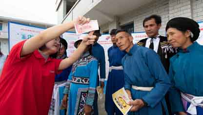 向威宁县新华村村民讲解识别人民币等金融知识。