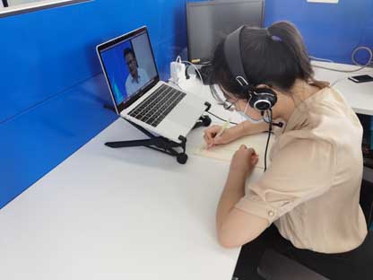 在云端课堂上,透过小小的屏幕窗口,学员们可以观看到各位老师授课时的体态动作,倾听深入浅出的讲解,还可以在“互动聊天”区时时发表听课感悟,提出有疑惑的问题。“云端”看似遥不可及,却又近在咫尺。