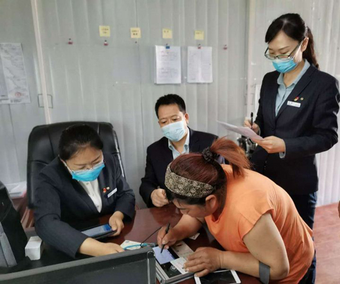 为在疫情期间助力建筑类企业复工复产,保证农民工工资正常发放,山东省济南分行营业部唐冶支行员工放弃节假日休息时间,前往网点附近某工地,现场为农民工激活银行卡,介绍金融产品知识和电子银行业务,受到农民工兄弟的欢迎。