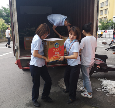 天刚亮,同事们你一箱、我一袋,防汛救灾物资便开始搬上大货车,趁着清晨路上车辆少,这批物资将在两个小时内火速运达夜郎镇。“还有最后几袋米,同志们加把劲儿!”支行行长“吆喝”着。