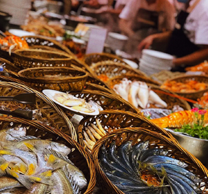 要说这夜市的小吃摊里哪家最为热闹,恐怕没有哪家能及得上大排档。潮汕的露天大排档,觥筹交错的海鲜最是让人过目不忘。放眼望去,“潮汕鱼饭”、泥猛鱼、赖尿虾、豆腐鱼、青蟹、蛏子、薄壳……尽是海鲜的天下。此时空气中早已飘起爆炒的油烟味、各类海鲜的香味,似乎还来不及走到档口,便已上演了一场绝佳嗅觉、听觉与视觉的多重享受。工作一天的人们,早已约上三五好友,聊心情、聊工作、聊前尘往事,哪怕是烟熏火燎,汗流浃背,也要毅然决然地点上喜好的海鲜,上一扎冰镇的啤酒,在弥漫而起的鲜香味中、此起彼伏的人声中,夹起一块,喝上一杯,尽享异彩纷呈的口感、所向披靡的美味,仿佛吃的不是海鲜,而是快意人生。