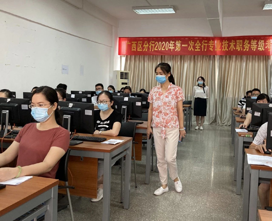 广西区分行分校考场中考务人员认真巡考,将考试纪律摆在前面