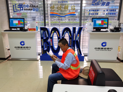 “阳光悦读驿站”的开设,让劳动者在繁忙工作后卸去疲惫 ■ 王嘉欣/摄