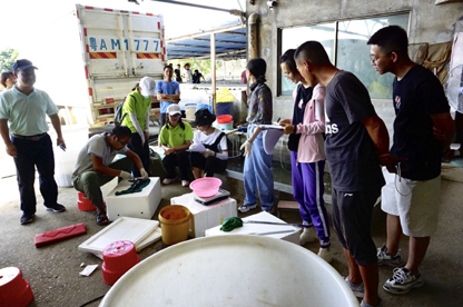 在金洋水产养殖基地进行调研的学子们,白天走访了多家水产养殖户,通过面对面交流了解养殖户需求,晚上仍热烈地讨论着调研的成果。