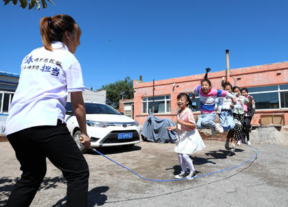 “太谢谢你们了,为孩子们带来这么多书籍和健身器材,还为孩子们辅导功课、一起运动,今天是这群孩子最快乐的一天……”60多岁的托管班负责人表达着内心对建行的感谢。