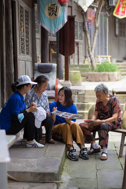 如果说,尖峰村是我貌似熟悉的边城小镇,那么,我们第二站所到的草朗村,则是似曾相识的乡村。狭窄的街道上,两旁是不规则的农村建筑,高低不一,参差不齐。