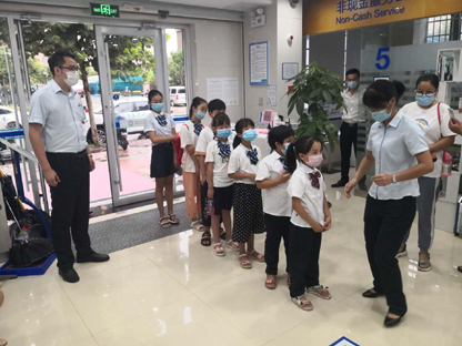 一走进山东省济南高新华山珑城支行的大厅就听到了这稚嫩的声音。在忙碌的大厅里,几个十岁冒头的孩子正在井然有序地引导客户取号。“叔叔阿姨,请在这里取号!”礼貌的话语,规整的手势,俨然一副小小银行家的样子!