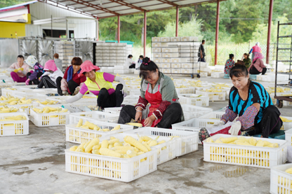 村民们在玉米加工厂工作