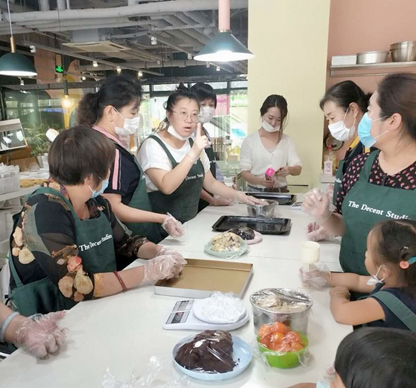 为回馈新老客户的大力支持,山东省威海渔港路支行国庆中秋节前邀请客户代表体验手工制作月饼。□ 李丽/摄