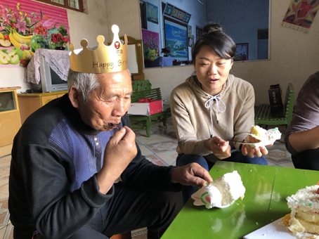 河南省新乡分行员工来到延津县夹堤村“五保户”王振江家中,为膝下没有子女的老人过了一次难忘的生日。■王润乾 王德阳/摄