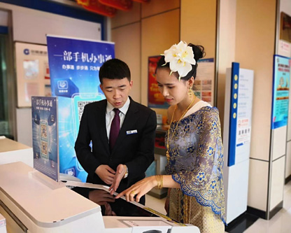 傣族姑娘依丹是云南省临沧耿马傣族佤族自治县孟定支行的“老客户”了,依丹一家在中缅边境经营中医馆,2013年结缘孟定支行后,一直将存款、保险、理财等业务托付建行。当天,依丹如常过来办业务,得知现在在网点就可以办理政务,当即就在STM智慧柜员机体验了“一部手机办事通”便捷生成驾驶证、行驶证二维码。智慧政务服务“新体验”让“老客户”的托付更安心、更暖心。