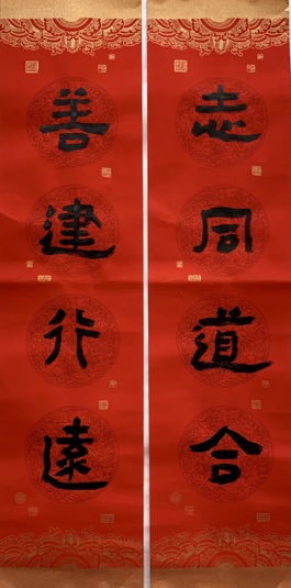 现在过春节要贴春联,其实这种习俗古已有之,不过当时还不叫春联,叫做桃符。《后汉书·礼仪志》记载:“正月一日,造桃符著户,名仙木,百鬼所畏。”古时,人们会在大门两旁挂上长方形的桃木板,用来驱鬼辟邪,然后在上面写上联语,意在祈福祈寿。宋代陆游《除夜雪》云:“北风吹雪四更初,嘉瑞天教及岁除。半盏屠苏犹未举,灯前小草写桃符。”除夕之夜,天降瑞雪,诗人饮着屠苏酒,写着迎春的桃符,满怀期待迎接新年的到来。王安石有一首《元日》诗,脍炙人口,流传很广:“爆竹声中一岁除,春风送暖入屠苏。千门万户曈曈日,总把新桃换旧符。”新春时节,风和日丽,千家万户燃放爆竹、欢饮屠苏、更换桃符,一番喜庆祥和的景象。经过时间的漫长洗礼,桃符也逐渐演化为今日的春联。