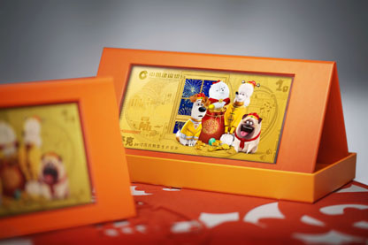 羊年压岁金的设计,由我国人民币设计史上最德高望重的泰斗——周令钊大师担纲艺术指导。作为我们国徽、团徽、少先队旗的主要设计者,他一生经典作品无数,可以说孩子们从小就是在他设计的旗帜下长大的,“这样的寓意也让压岁金中蕴含了送给孩子们的一份特殊祝福。”狗年压岁金设计过程中,要让呆萌的好莱坞荧幕宠物形象变成符合中国新年生肖的特性,设计团队着实费了不少周折,给老外普及中国生肖的缘由、协调宠物犬穿上中国服饰的形象授权,以及设计突显中国年味元素的动作形象,一系列磨合后,身着春节盛装,簇拥聚宝袋的狗年压岁金主图最终敲定。“你会发现全球的文化机构在和建行合作压岁金设计,一切都在为我们服务,孩子们得到的是来自世界的新年祝愿。”