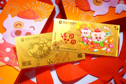 每一张黄金压岁钱的推出,都力求在产品趣味、形式上推陈出新。从超薄彩印工艺、温变油墨、感光油墨到AR技术应用,建设银行从未停止探索的脚步,不断突破工艺极限,赋予传统黄金压岁钱现代、时尚、科技的新元素,并在同业同类产品中始终保持着工艺加工和科技水平的领先。