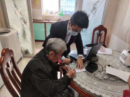 午餐后12:30分,支行两名员工领着机具出发,12:55分到达客户住所。老人家精神不错,对银行工作人员的到来感到新鲜和惊喜。开机、设置、开卡、激活,一番忙碌后,支行员工在13:15离开,客户一家人热情道谢。