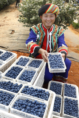 春风拂面,红河州蒙自市草坝镇海升产业基地。看着一颗颗蓝紫色的果实挂满枝头,蒙自海升现代农业有限公司副总经理申军喜上眉梢。“今年基地1200亩蓝莓产量估计能达到六、七百吨。”
