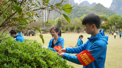 在河池民族公园,河池分行的志愿者们或向前来游玩的群众宣传绿色理念,或进行垃圾清理,或帮助护理员修剪、清理树枝,共同为建设环境优美、生态和谐的家乡贡献力量。