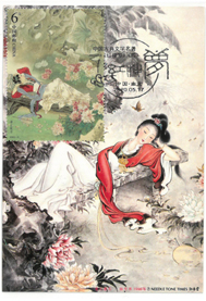 1981年11月和1982年4月分两组发行的《金陵十二钗》,同时还有《双玉读曲》小型张一枚,这也是文革后发行的第一套古典名著题材邮票,采用刘旦宅先生原画作品,将金陵十二钗在原著中最精彩的章节选取了十二个故事:黛玉葬花、宝钗扑蝶、元春省亲、迎春诵经、探春结社、惜春构图、湘云拾麟、李纨课子、凤姐设局、巧姐避祸、可卿春困、妙玉奉茶。