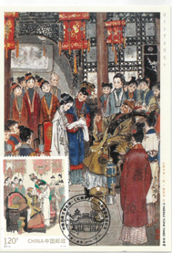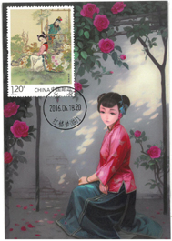 我整理现有的红楼梦邮品,更多的还是极限明信片。作为制作极限明信片载体的美术明信片不少,王叔晖、华三川、刘旦宅、戴敦邦等名画家先后有关于《红楼梦》的画作被制作成明信片,邮政部门还发过《红楼梦》题材的贺年有奖明信片,这些都是制作极限明信片的优质载体。《红楼梦》由于是文学作品,极限明信片的“定戳”成为争议,有的选择作者祖籍地或居住地,但多数人认为邮戳盖小说中的故事发生地“金陵”,即今天的南京较为合适。