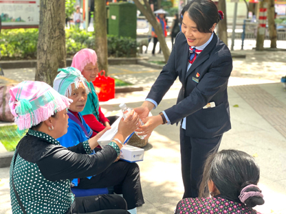贵州省黔东南分行营业部组织员工为户外劳动者送上一瓶瓶“爱心水”,也把清凉和关爱送给他们。■ 黄玫/摄