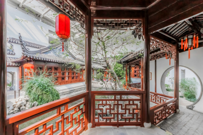 为了让园林中的空间层次感更加通透与深远,便有了透景与借景的巧妙运用。透景是在园林墙壁上开窗或开门,利用墙壁上开凿的各种形状的门窗,使园林景观有了空间区隔,隔而不断,视野通透,增加景深的效果。其中门窗与墙壁的大小比例还是非常重要的。
