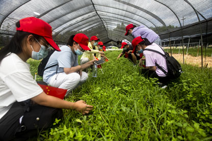 近日,安徽省池州分行开展学子暑期下乡实践活动,让乡村成为在校学子实践锻炼的舞台,在建党百年奏响“向下扎根、向上成长”的青春之歌。学子们走进“九华黄精”种植基地,向当地村民请教种植技巧和黄精产业知识,脚踏土地切实感受作物的成长。■ 张太平/摄