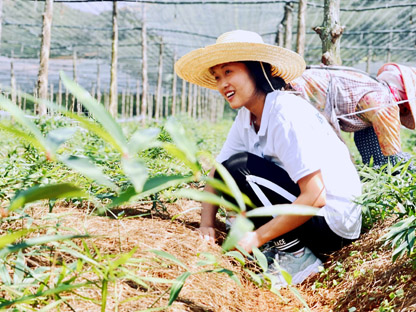 文山丘北县是云药的重要种植基地,下乡学子潜身中药种植基地,为药植作物黄精除草