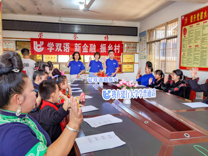 下乡学子在苗乡学堂进行“普通话文明服务四部曲”的演练,旨在提升乡村旅游产业村民们的优质服务能力