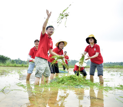 学子们走进田间,帮助农民们抢收早稻、抢抛秧苗