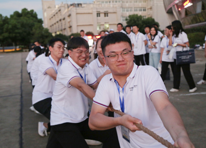 新入职员工参加趣味运动会拔河比赛,团结一心,全力以赴,为团队争光彩