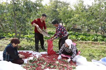 再出去跑,再出去借,合作社规模一点点扩大,乡亲们每年普遍增收15%。再遇上用钱的事,大家伙凑,能出3万元的出3万元,能出30万元的出30万元。合作社上了进口的自动化选果设备,苹果的大小、红度自动机选,规格统一、品相一致的苹果装箱再卖,销路大好,合作社被评为国家级示范社。