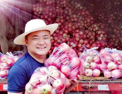 为了苹果的“花样年华”,王少斌和合作社的伙伴们没少下功夫。4月份给果子套膜袋,5月下旬给果子套纸袋,快成熟时套上印好图案的塑料膜,接受阳光20天的沐浴,王少斌说这叫“阳光雕刻技术”。“新红星”8月下旬雕刻,“红富士”则得等到10月上旬。