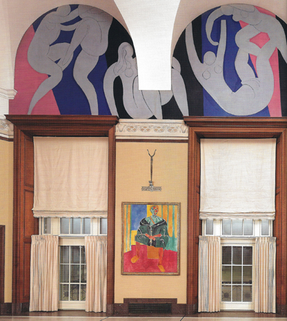 梅里翁巴恩斯基金会主展厅,上为马蒂斯壁画《舞蹈》(The Dance)